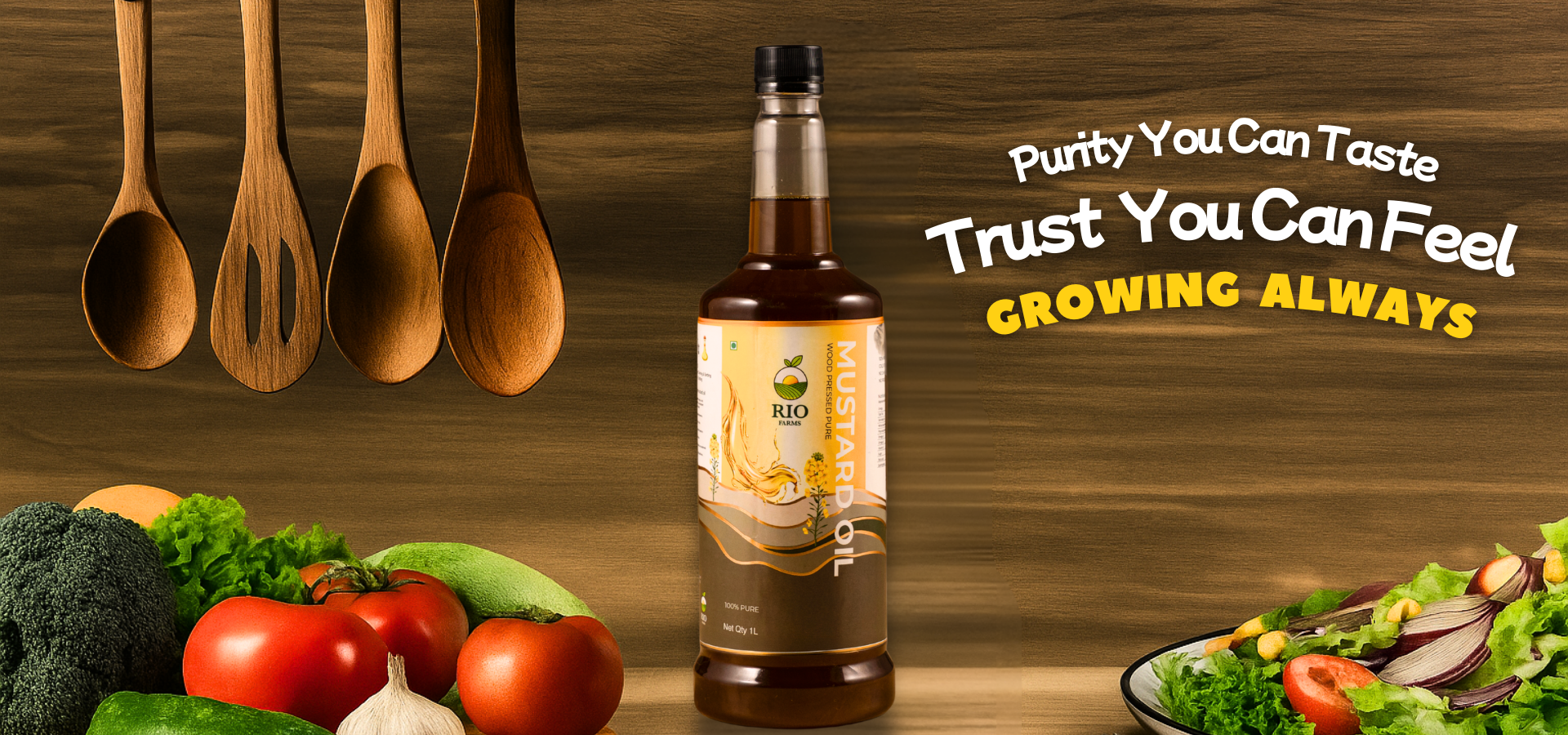 At RioFarms, we believe in the power of nature to provide the best for our health and well-being. Our journey began with a passion for purity and a commitment to delivering the finest organic products straight from our farms to your doorstep. We started with two essential staples of every Indian household – Mustard Oil and are dedicated to expanding our range with more wholesome, natural products in the future.